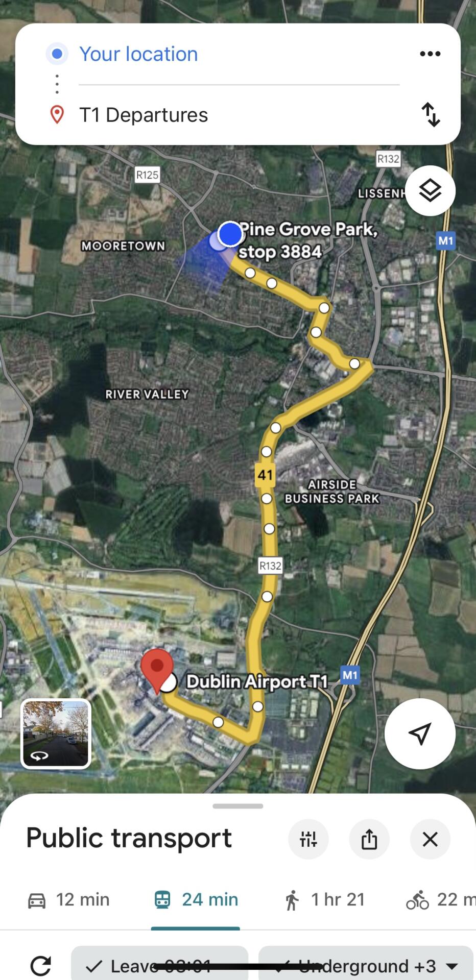 3 minutes walk to nearest bus stop (No. 3884 - to Dublin Airport/City Centre)