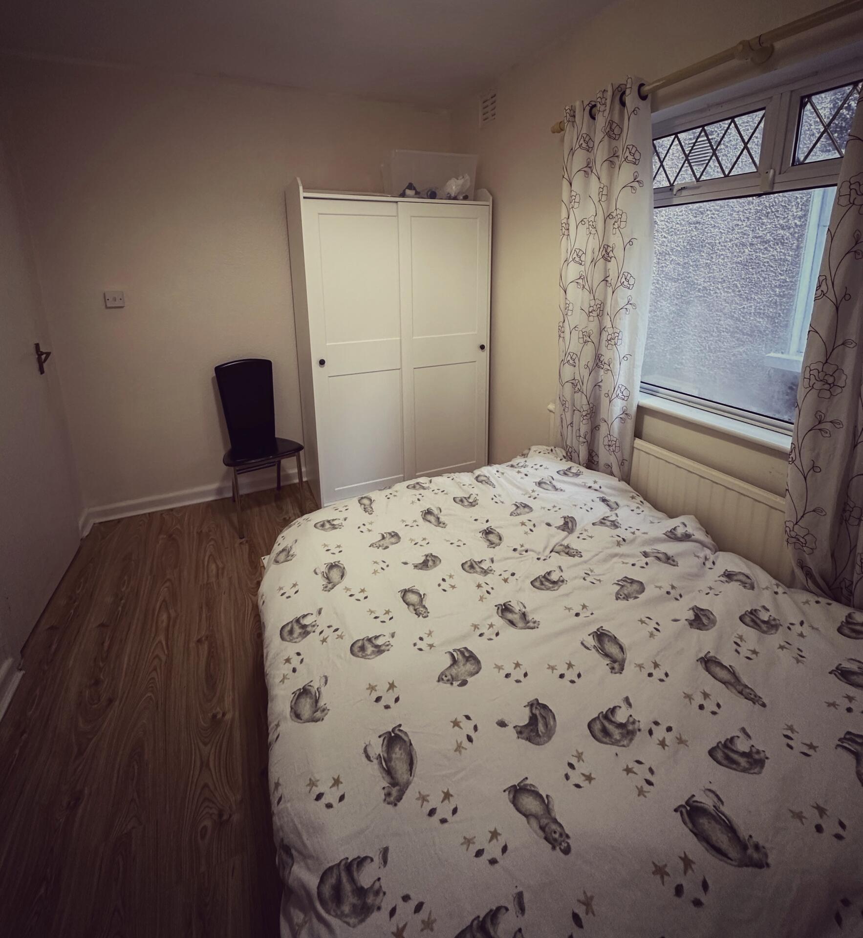 Single room available Sunday-Friday. Room is for one occupant. Large bed, wardrobe, full length mirror and bedside locker. No desk available therefore suits someone who studies at college / in Library. There is a cat in the apartment therefore not suitable for those with allergies.