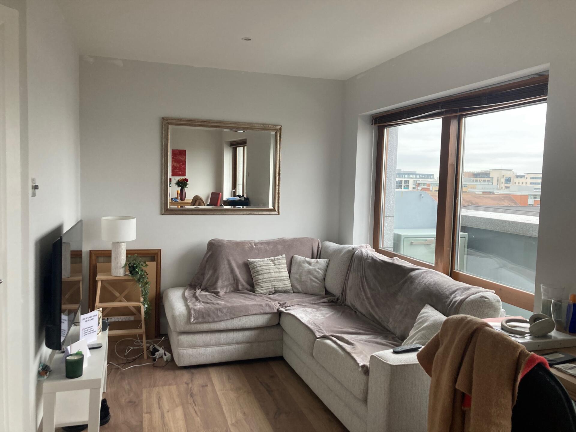 Private room comes with bed, duvets, linen, desk, chair, bedside locker and lamp, wardrobe and rug. Views over Dublin City. Has a private bathroom for exclusive use. Cleaning supplies and toilet roll will be provided, along with detergent for washing machine.