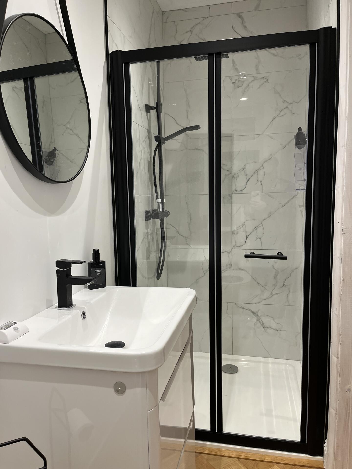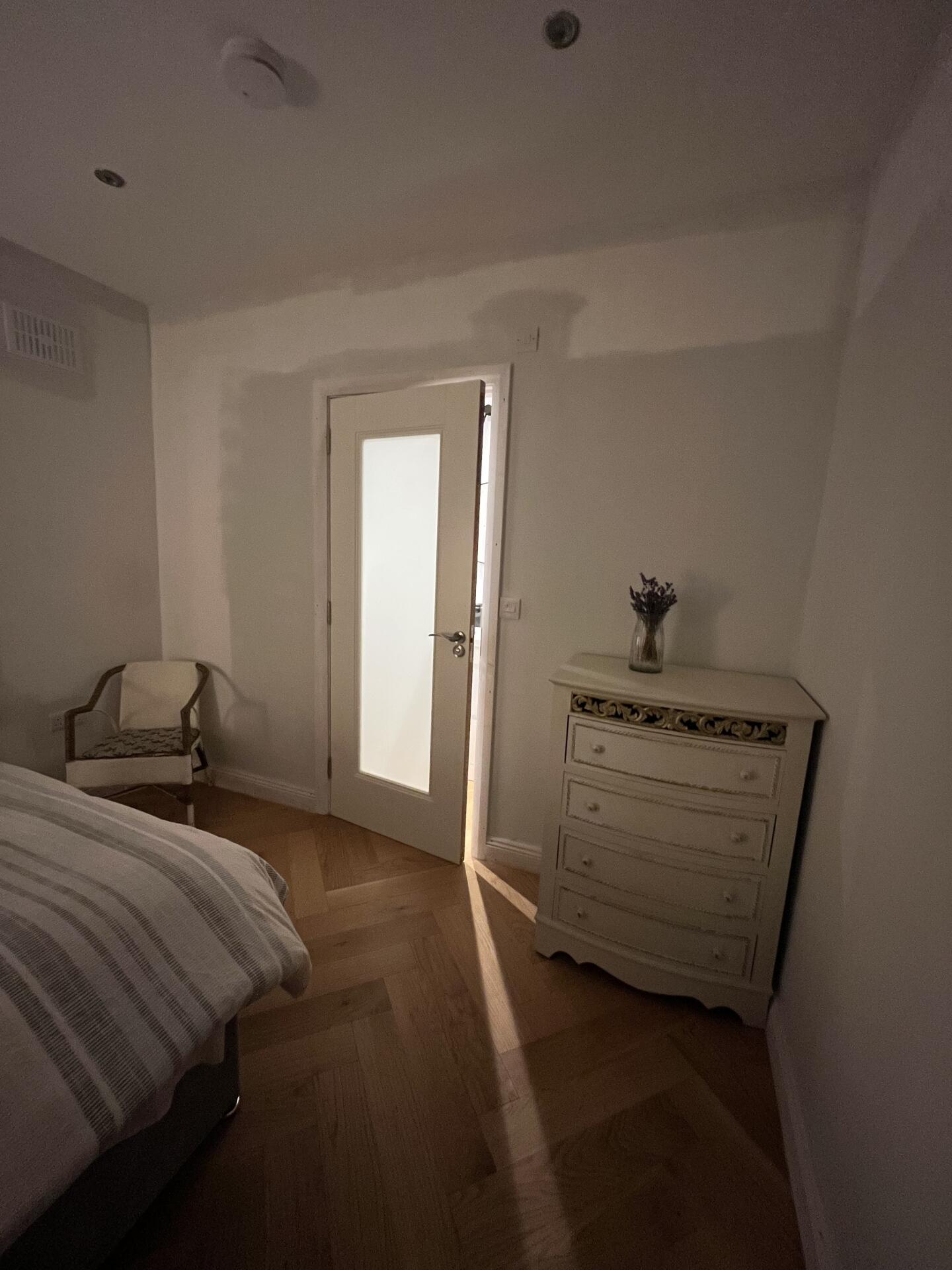 Double bedroom en suite overlooking natural garden in newly renovated house. Underfloor heating with solid wood floors throughout.