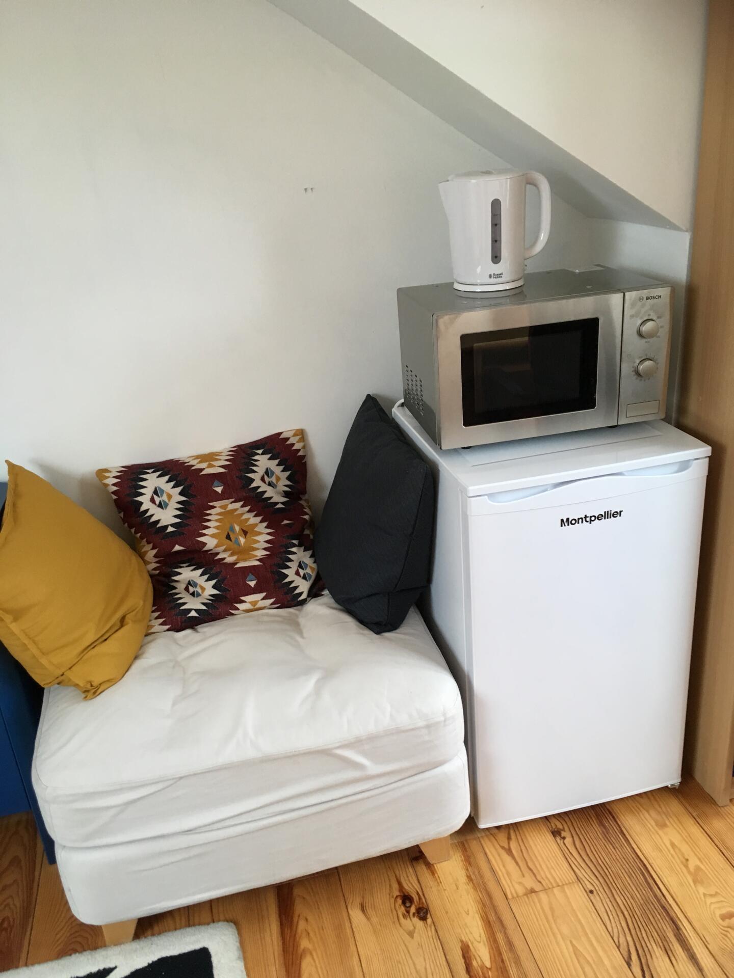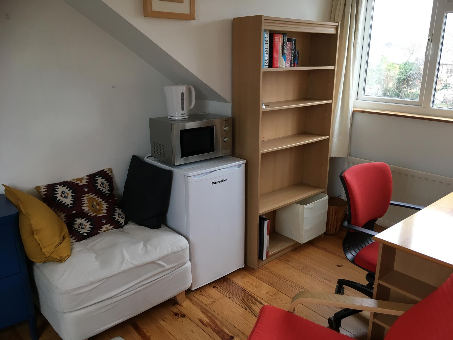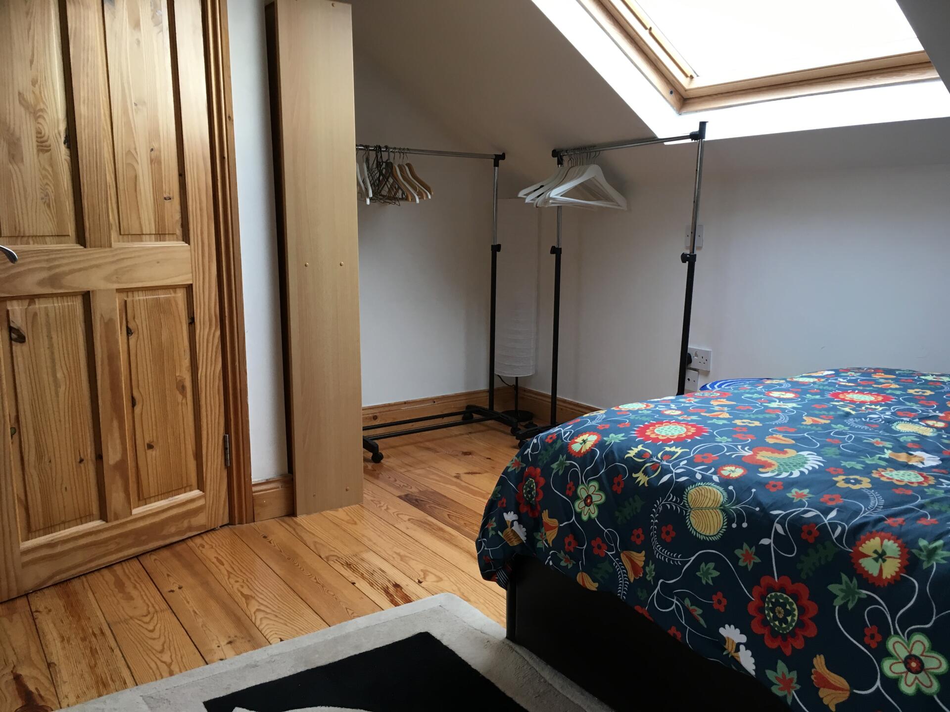 - Large bright attic room with ensuite bathroom (updated pics to follow- room being repainted) in family home. - Equipped with double bed, storage, fridge, microwave, kettle, study desk and designed for independence and privacy - Private Bathroom recently decorated - Wifi, Gas and Electricity included